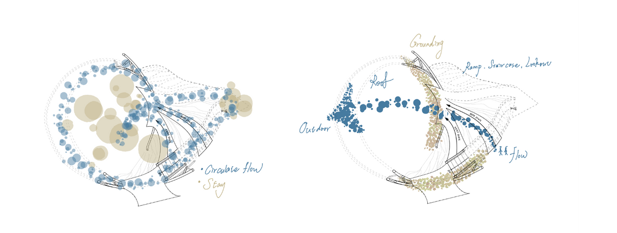 Using textile as the main body of the pavilion and developing a spatial experience from one-dimensional to two-dimensional to three-dimensional.